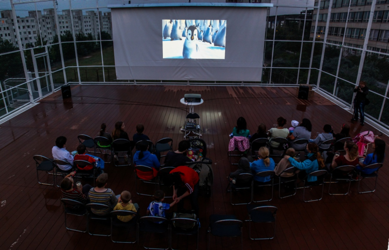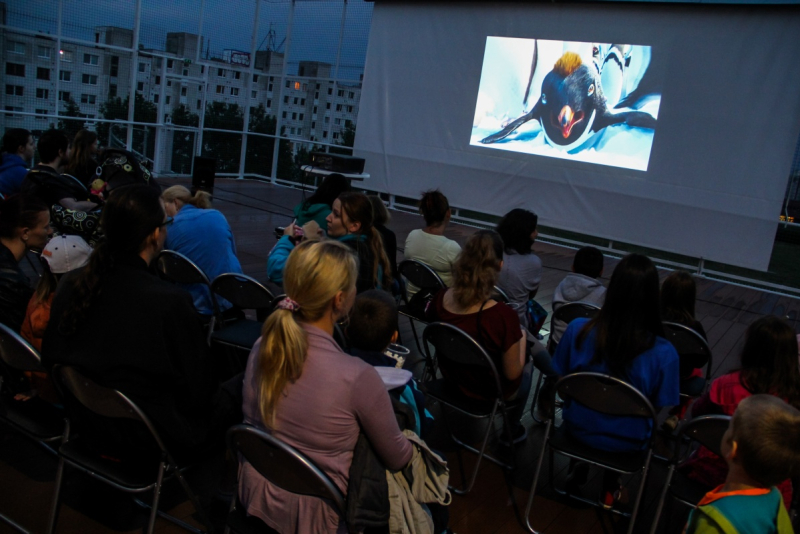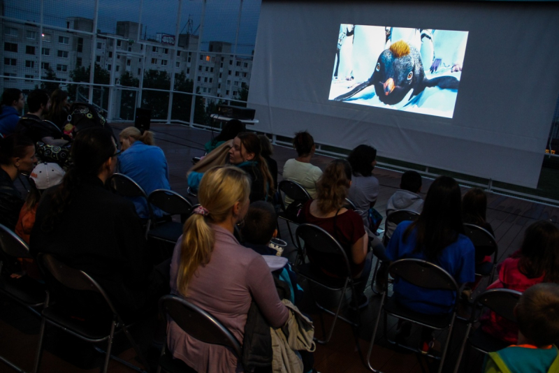 Našťastie tých, ktorí sa nedali odradiť popoludňajšou rozmarnosťou počasia bolo veľa. Od bábätiek až po babičky s vnúčatami. Podujatie krátkym príhovorom otvorila starostka našej mestskej časti Iveta Kijevská. Pre návštevníkov boli prichystané minerálky, pukance a pre prípad chladu aj deky. Mohli sme teda spolu prežiť hodinu a pol putovania po ľadových kryhách Antarktídy, riešením vzťahov i starostí tancujúcich tučniakov a počúvaním do deja veľmi trefne zapadajúcich pesničiek, ako aj množstva akčných scén.