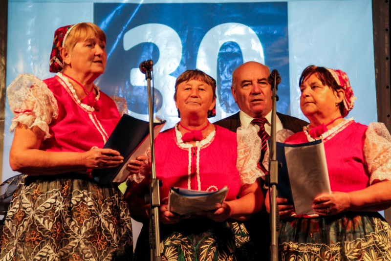Po krásnom dokumente nasledovalo umelecké vystúpenie súboru Železiarik a Želiezka. V ľudovej téme pokračovali naši seniori zo súboru Súboranka, ktorí potešili tých skôr narodených ľudovými piesňami.