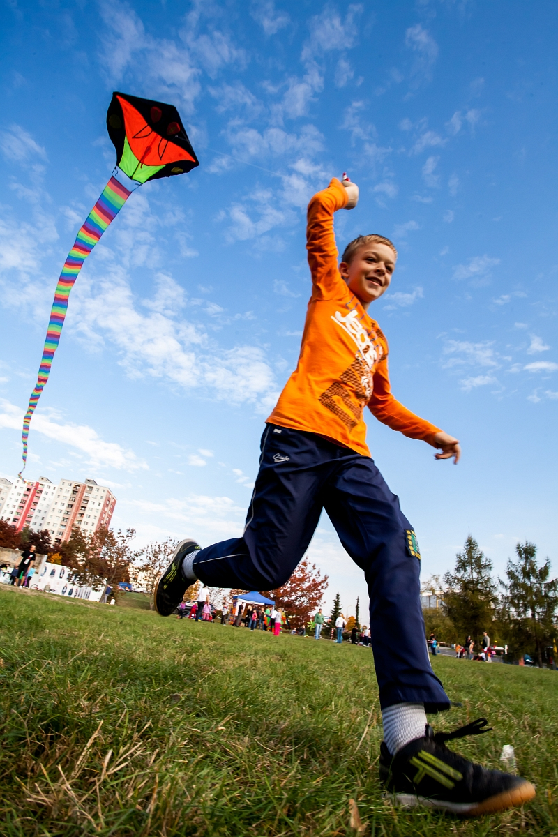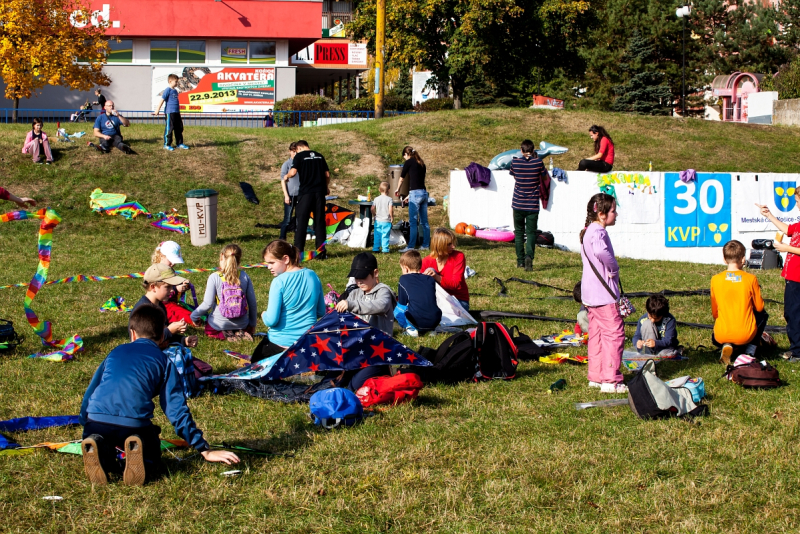 Prvá časť programu - púšťanie a vyrábanie šarkanov, bola náročná. Vietor utíchol a o to viac nechal robotu na deti, mamičky a oteckov, ktorí pobiehali sem a tam, aby aspoň na chvíľu videli svojich šarkanov lietať. Stálo to veľa námahy, ale určite to ocenil kardio- vaskulárny systém, ktorý sa výborne prekrvil a rovnako bolo na tvárach vidieť i vyplavenie endorfínov šťastia do krvého obehu. V druhej časti programu mali deti možnosť súťažiť v rôznych športových disciplínach sprevádzaných našimi animátormi- športovcami ako napr. Bolt, Kaliská, Toresss, Moravcová... Za víťazstvo získali tehličku, ktorá slúžila ako platidlo v špeci obchodíku so sladkosťami. Tehlička sa prilepila na motivačný plagát, aby sme si pripomínali 30. výročie od výstavby sídliska KVP.