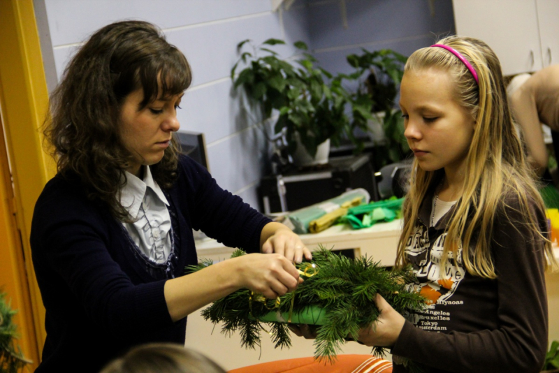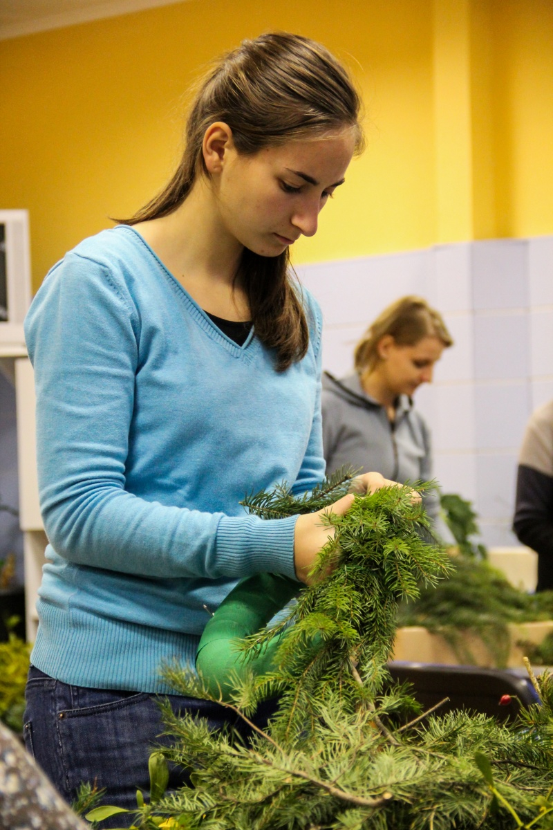 14-ročná Terézia Turyová z gymnázia sv. Košických mučeníkov chodí na viazanie adventných vencov pravidelne. Je tu už štvrtýkrát. Veniec pripravuje pre svoju triedu. „Je to dobrá akcia, páči sa mi tu. Vence už viazať viem, lebo tu nie som prvýkrát, ale animátori tu ľuďom pomáhajú. Ukazujú ako sa vence robia, ako by mali vyzerať.“