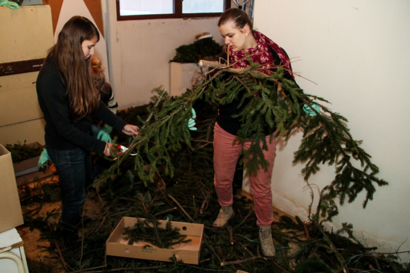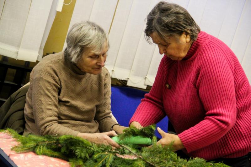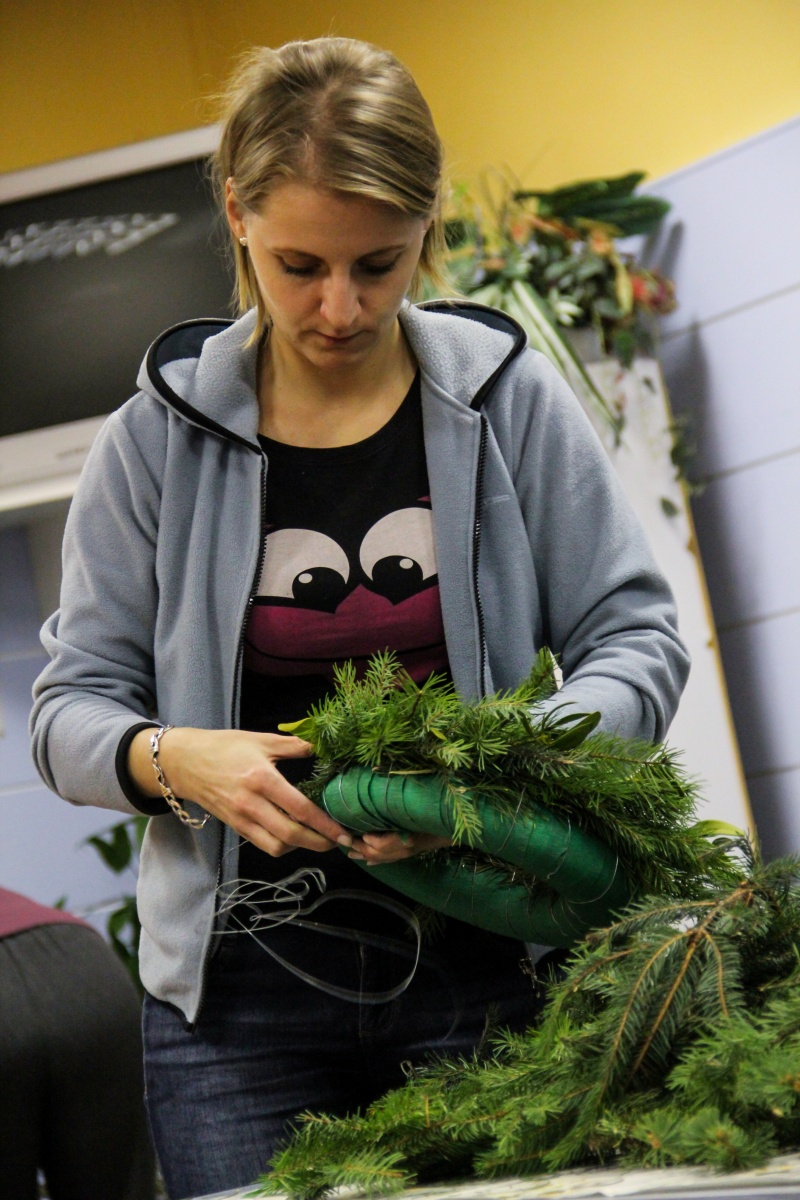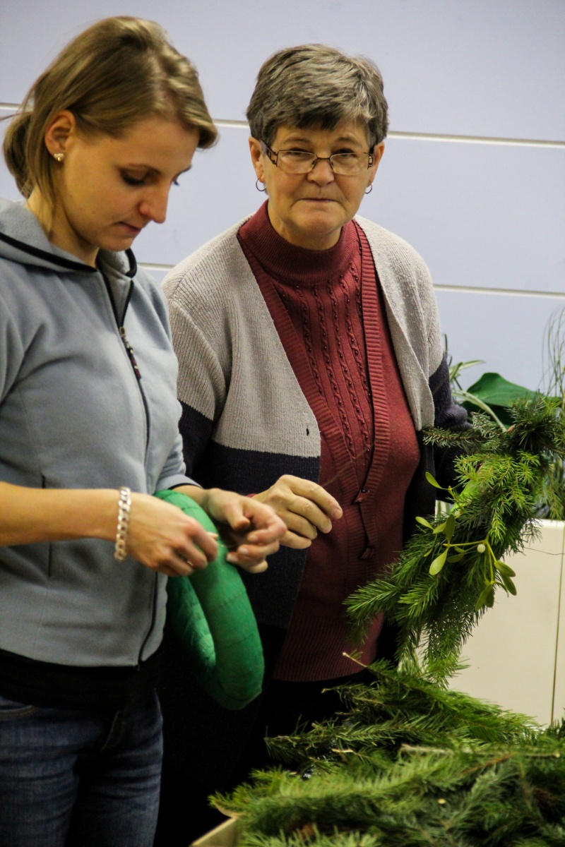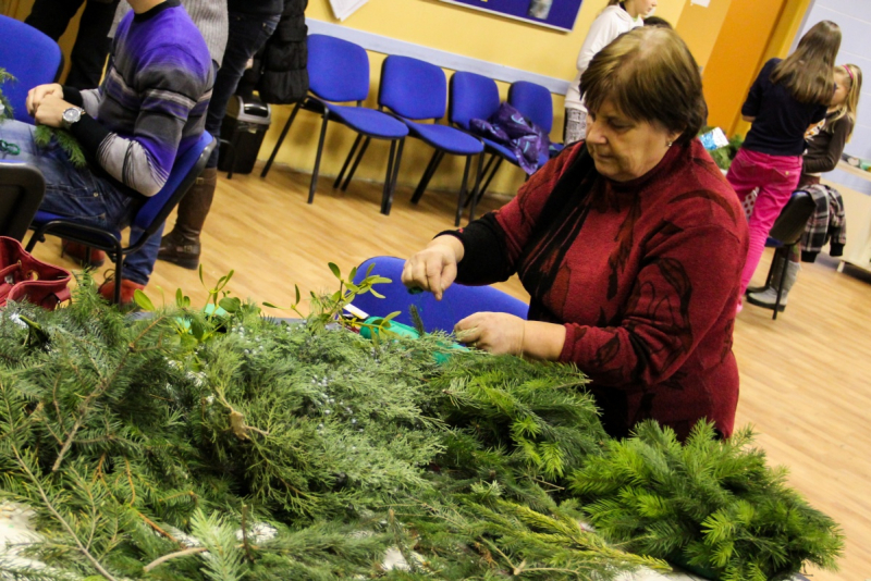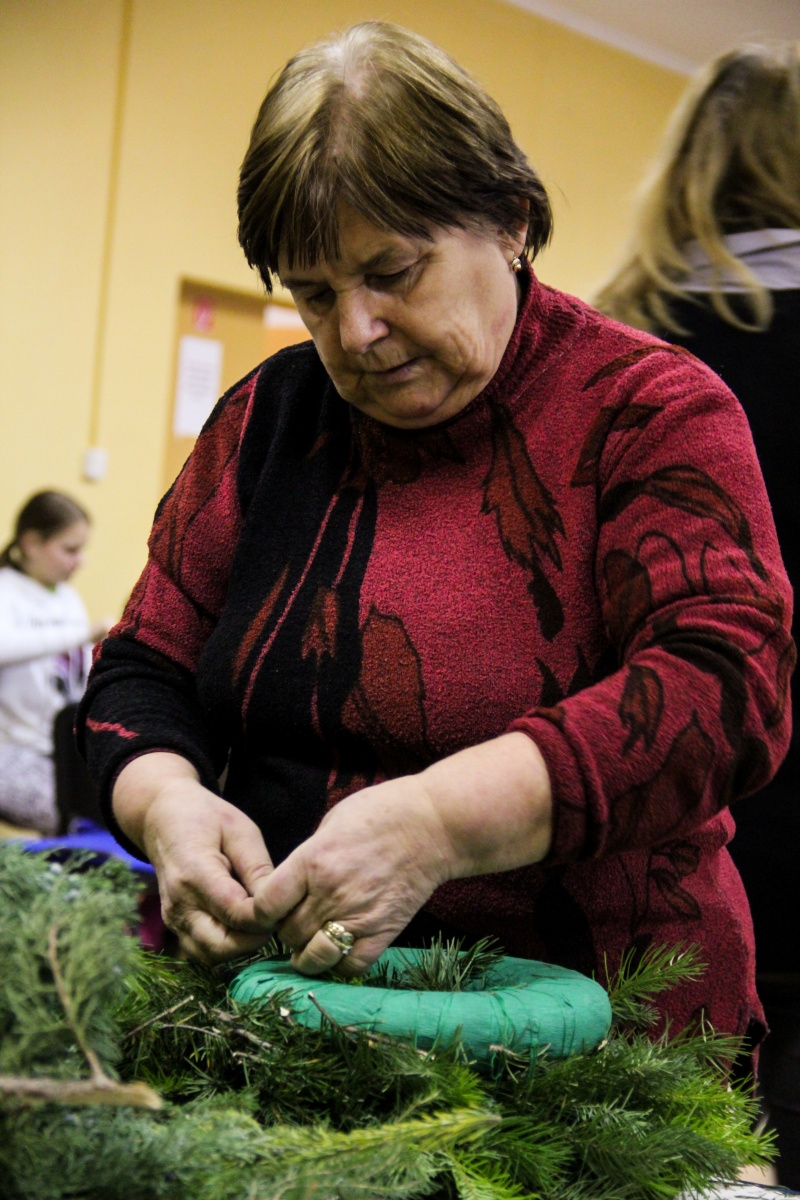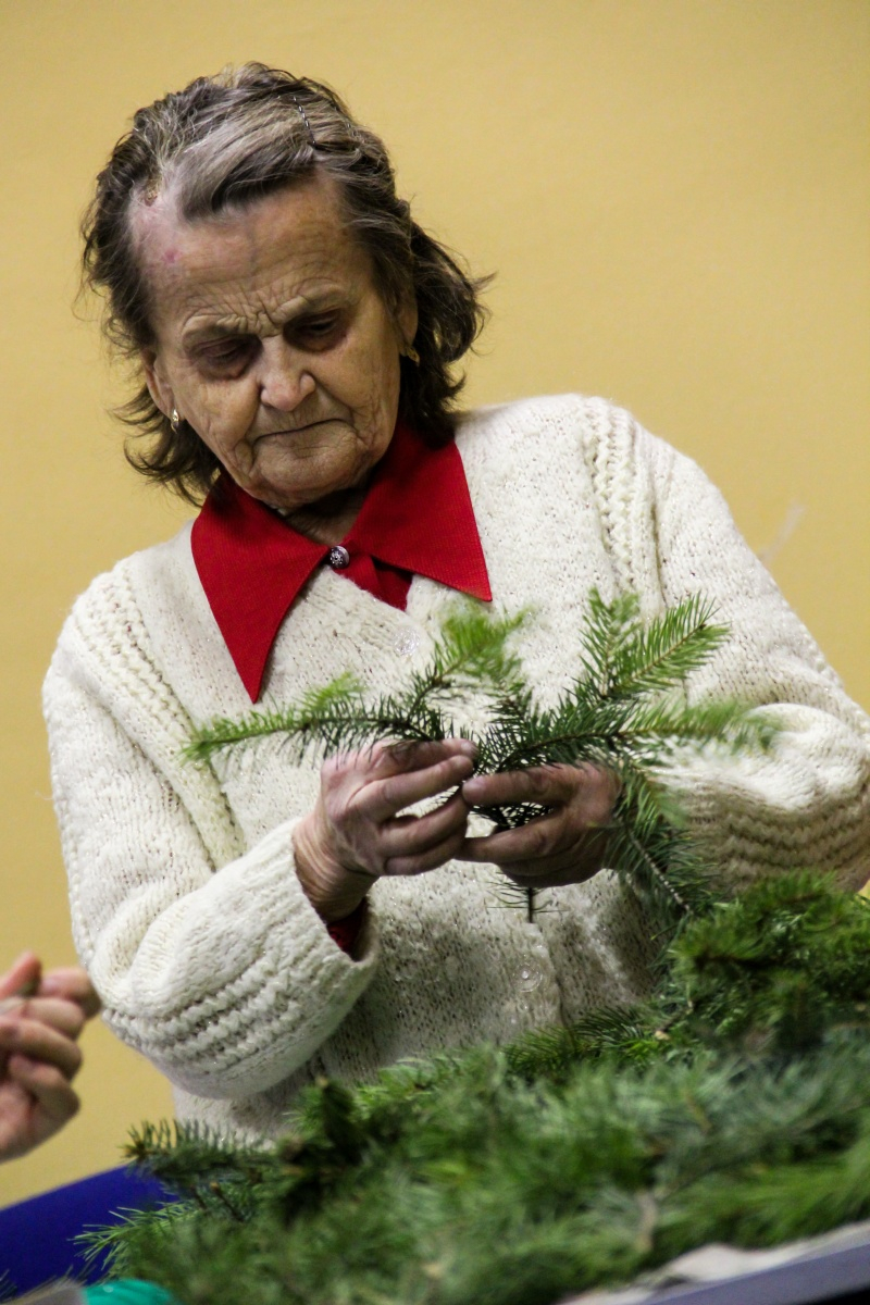 Regina Zľamalová pripravovala veniec pre seba a manžela. „Som tu prvýkrát a veľmi sa mi tu páči, lebo je tu veľmi dobrá atmosféra. Cítim sa tu dobre, lebo mi tá čačina, ktorá je všade navôkol pripomína blížiace sa Vianoce. Človek tu získa nový obzor, niečo nové sa naučí.“