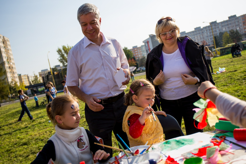 V sobotňajšie popoludnie 11.10. 2014 sa na našom Sídlisku, konkrétne na Moskovskej triede pod OC Iskra uskutočnilo rodinné podujatie „Šarkaniáda“, ktoré zorganizovala Mestská časť Košice – Sídlisko KVP v spolupráci s OZ Laura – združenie mladých a MC Lentilka. Nádherné počasie, bohatý program, občerstvenie a súťaže, prilákali množstvo účastníkov a rodín s deťmi. Deti mali možnosť sa vyšantiť na trampolíne, dať si vymaľovať tvár, vyrobiť si najkrajšieho šarkana alebo lietadielko podľa svojich predstáv, vyzdobiť chutného šarkanoperníka a potom ho aj spapať. Veselú slnečnú atmosféru umocnili sprievodné súťažné stanovištia šikovných animátorov z Laury. Súťažilo sa v štyroch kategóriách: o najkreatívnejšieho, najkrajšieho, najdlhšie a najvyššie lietajúceho šarkana. Podujatia sa zúčastnila aj starostka Mestskej časti Košice – Sídlisko KVP Ing. Iveta Kijevská a privítala všetkých prítomných ako aj starostu Mestskej časti Košice – Západ RNDr. Rudolfa Bauera, PhD., ktorý zavítal na našu „Šarkaniádu“. Pani starostka odovzdala ceny súťažiacim, odmenila sladkosťami každého účastníka a zároveň pozvala všetkých zúčastnených pomaškrtiť si na sladulinkej cukrovej vate. Deti sa veľmi tešili zo svojich nádherných farebných výtvorov a prežili sobotňajšie popoludnie plné zábavy. Ďakujeme všetkým za účasť na našom s vami už tradičnom rodinnom stretnutí.