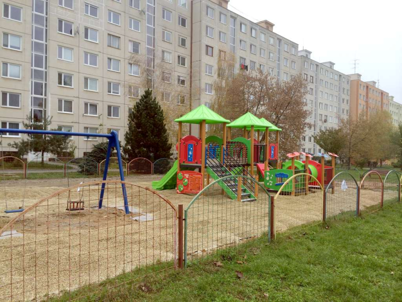 Pre mladšie deti a ich mamičky je vhodný prízemný priestor s výškou podesty 25 cm s edukatívnymi prvkami, ktoré vytvoria bezpečné útočisko pre hru, cibrenie motorických schopností a získavanie vedomostí (dopravné značky a počítadlo). Odvážnejšie deti môžu svoje pohybové schopnosti rozvíjať na šplhacej sieti, šplhacej rampe, šmýkalkách, či na štyroch navzájom prepojených vežiach. V areáli ihriska ostala aj dvojmiestna hombálka, ktorá je u detí veľmi obľúbená. Rodičia môžu sledovať hru svojich ratolestí z pohodlia nových lavičiek.