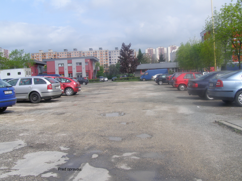 V Mestskej časti Košice – Sídlisko KVP za obchodným centrom Jednota sa nachádzajú dve veľkoplošné parkoviská z polovegetačných tvárnic. Vzhľadom na kvalitu týchto tvárnic, prechod osobných motorových vozidiel nebol plynulý a ohrozoval technický stav vozidiel. V snahe riešiť túto nepriaznivú situáciu sme v minulom období vykonávali zásyp nerovností štrkom.