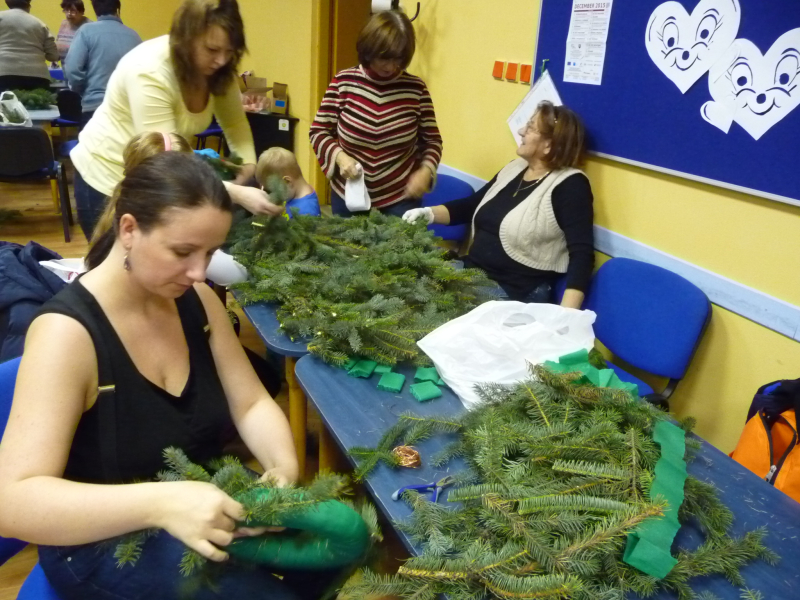 Posledný štvrtok pred začiatkom Adventu voňalo denné centrum očarujúcou vôňou čačiny. Obyvatelia sídliska si mohli spolu vyrobiť svoj adventný veniec. Denné centrum sa zaplnilo deťmi, dospelými i tými skôr narodenými. Ponuku mestskej časti zastaviť sa v tomto predvianočnom čase a stráviť spolu popoludnie v komunite kávépéčkárov využilo 93 obyvateľov.